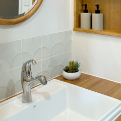 古材風無垢材やテラコッタ、DIYした珪藻土で、フレンチカジュアルなLDKが誕生
